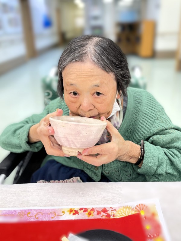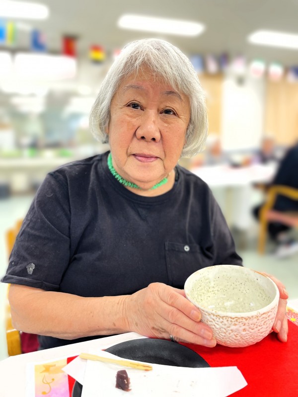本日は虎屋の羊羹に職員が点てたお抹茶