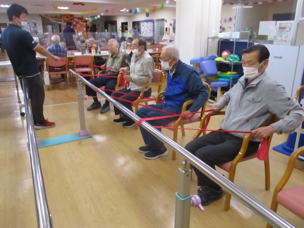 本日はボールとセラバンドを使った機能訓練の様子をご紹介いたします。