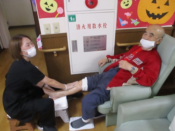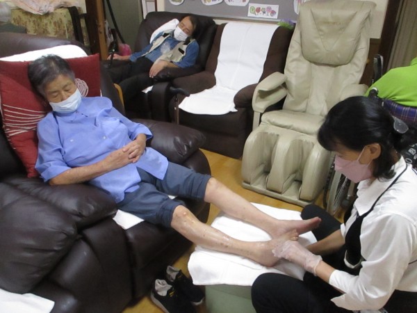 やさしいタッチで行われる施術に、皆様からは「とても気持ちいい」「眠くなっちゃうね」と笑顔が見られ、心も体もリラックスされたご様子でした。