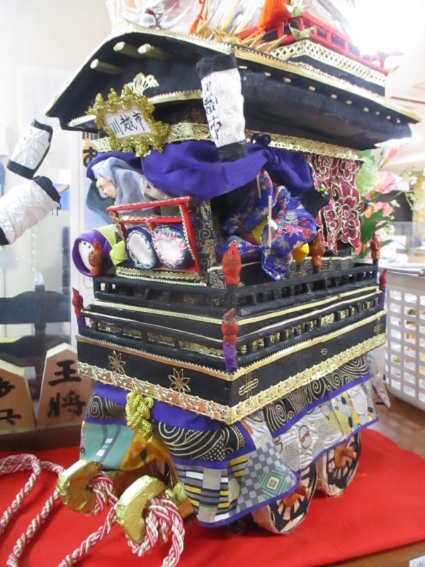 なんとこの作品は、ご利用者様の手作り!細かい部分まで丁寧に作られ、山車は本物さながらの迫力です。「本当にこれを1人で作ったの?」と思わず声が出るほどの完成度に、皆様からは「すごいね」「芸術だね!」と感嘆の声が上がっていました。出入り業者様や施設のご家族様にも好評です。