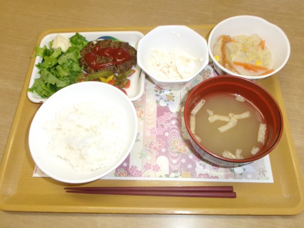 ・ハンバーグ パプリカとレタスを添えて