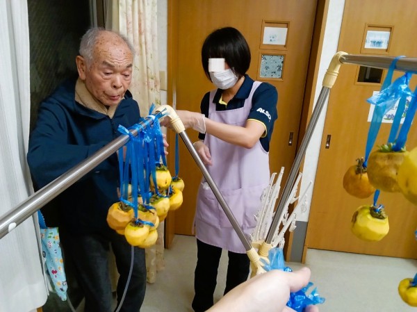 4.5日ごとに揉んでいくと中が柔らかくなって渋みが抜け、甘味の強い干し柿になると・・・( ..)φメモメモ