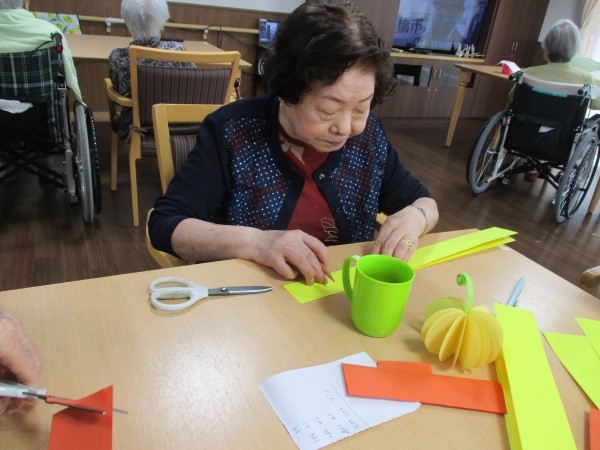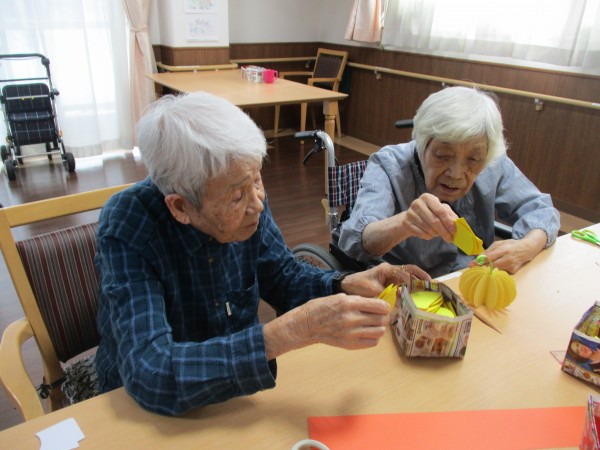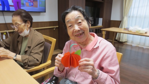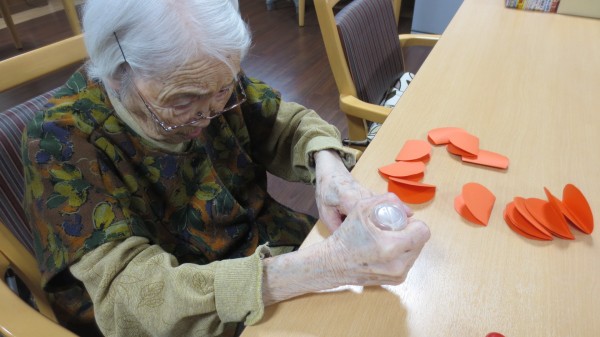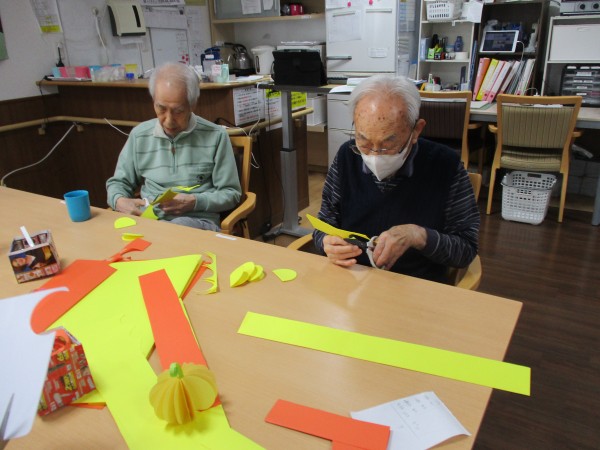 画用紙を切るところから、のりで貼って完成させるところまで、すべて利用者様にお任せして作っていただきました。みなさん協力しながら楽しんで作っていました(^^♪