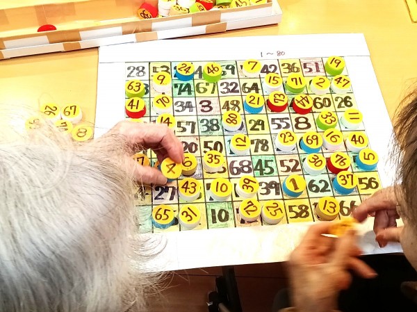 全て、職員の手作りで脳トレ数字合わせのシート駒コマを作成しました!!