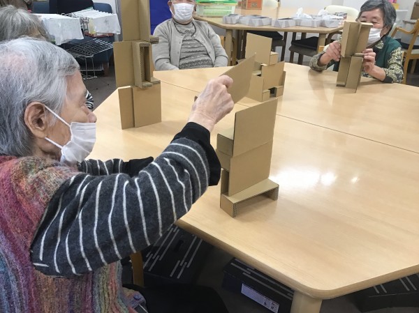 段ボールで箱を作り積み重ねていくゲームです。