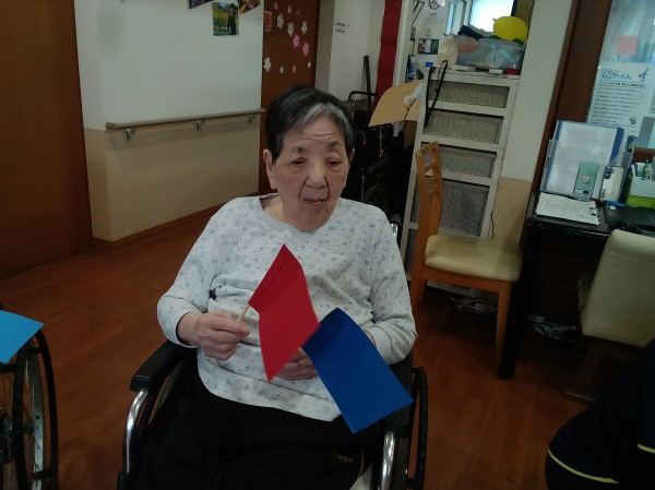 旗あげはテレビの画面の先生と一緒の動きをしていただけになってしまっていたので