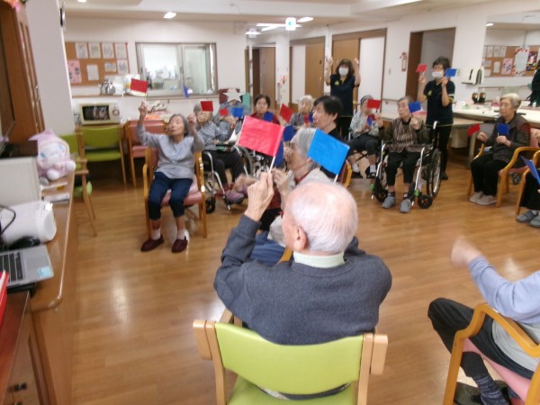 先日Zoomを使って、他施設と合同の運動会を行いました。画面越しに手を振ったり応援したり、とてもにぎやかでした。玉入れや風船運びなど、笑顔いっぱいの楽しい時間となりました。