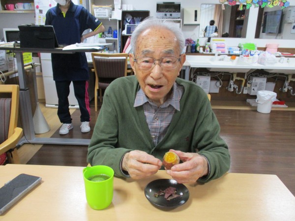 秋、寒くなると食べたくなるのが焼き芋。ということで、おやつの時間に『焼き芋パーティー』を行いました!