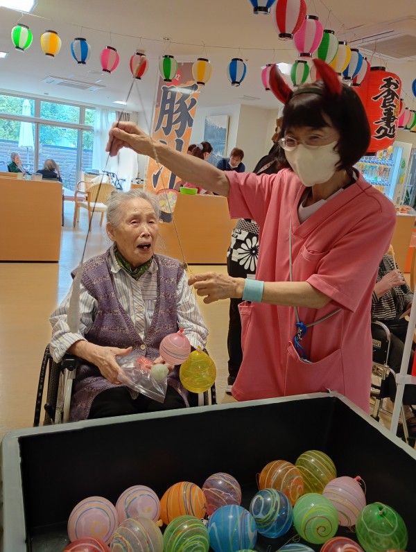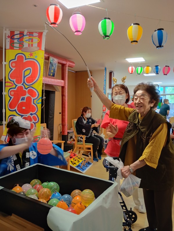 ヨーヨー釣りではお気に入りの色のヨーヨーをゲットして