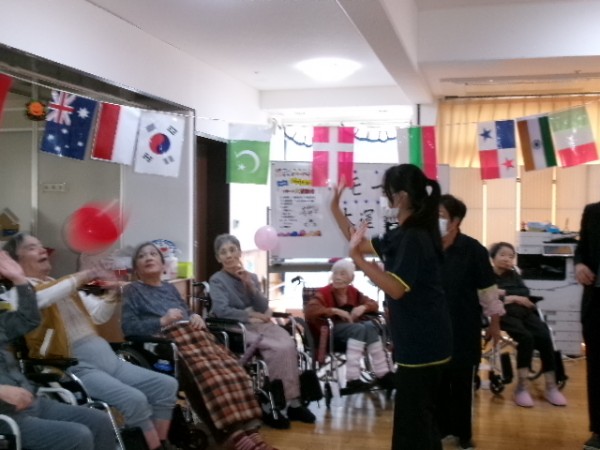 まずは簡単そうで意外と難しい、風船バレー!
