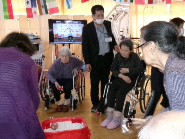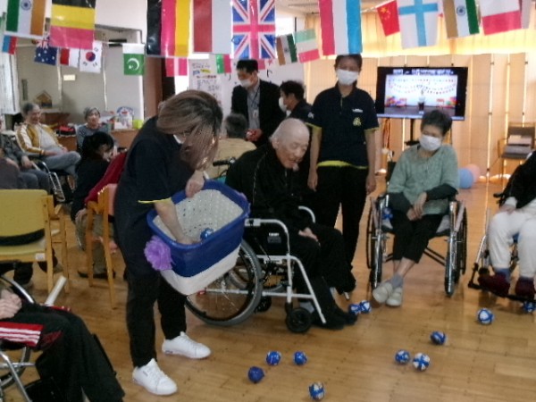 狙いを定めて、皆さま上手に玉入れ成功!