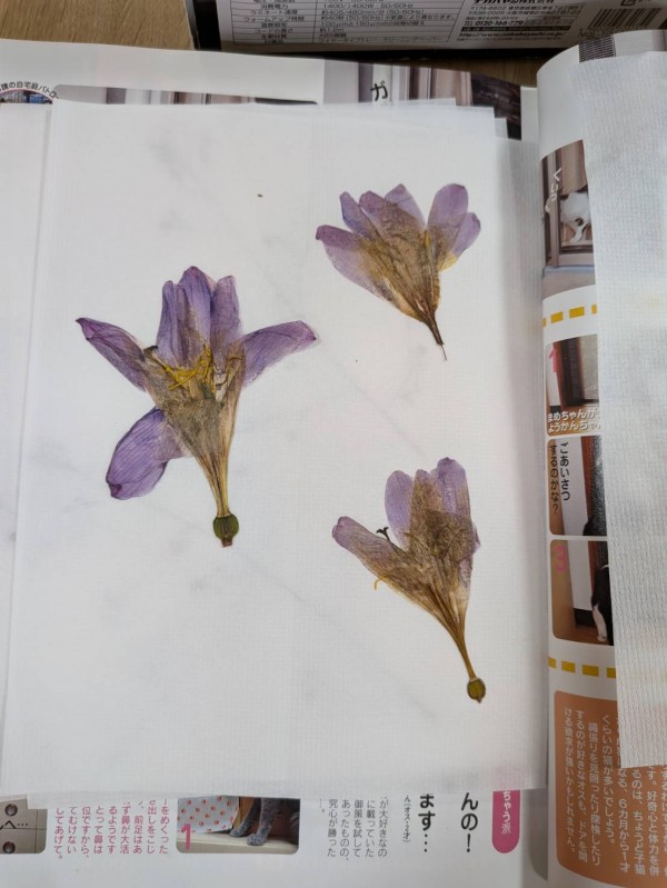 皆さんが選んだ花をしおりに乗せてラミネートをかけます。