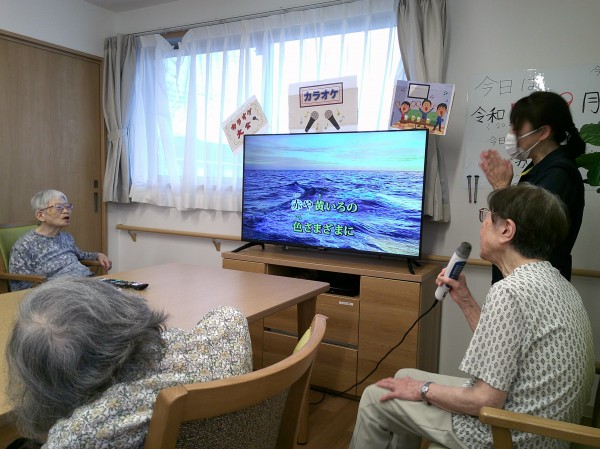 急遽、マイクを持参したスタッフからの提案で、午後から「カラオケ大会」開催決定☆彡