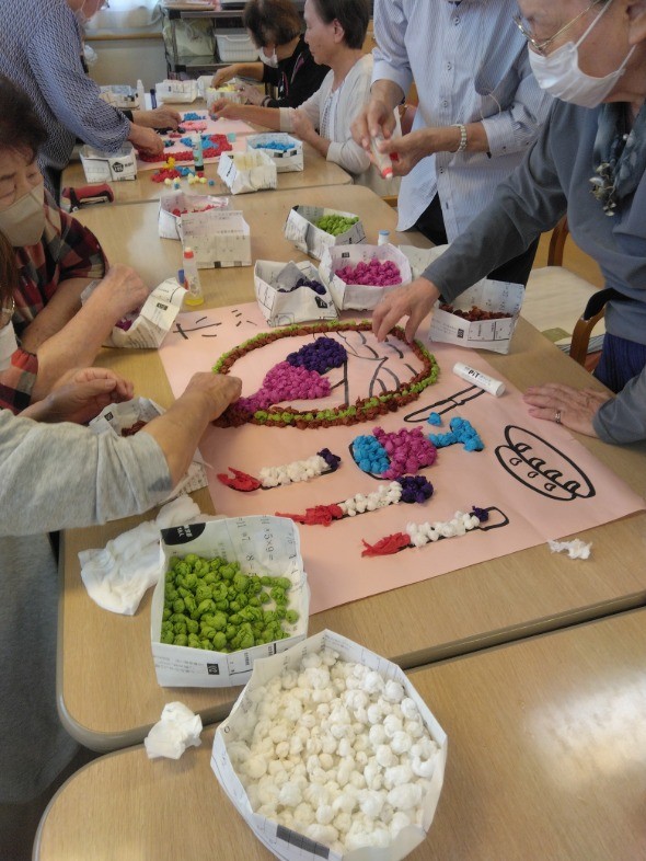 出来上がった作品はデイサービス内に飾ります!ぜひ見に来てくださいね(^^)/