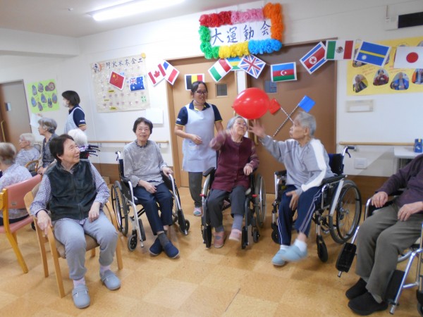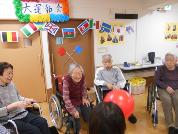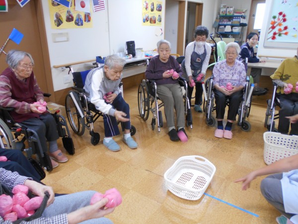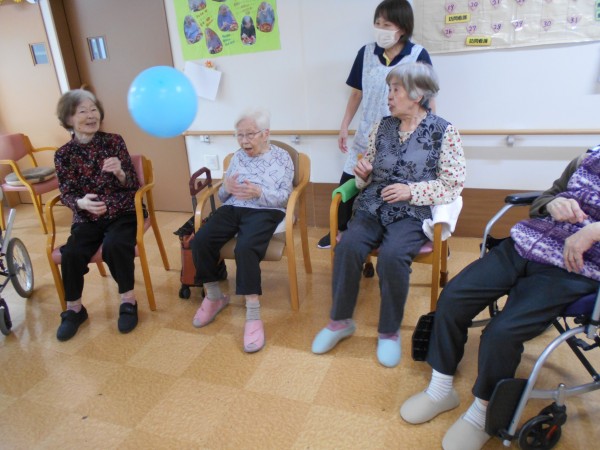 風船バレーはよくホームでもやるレクですね(*´ω`*)