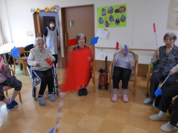 最後に午前中に練習した赤青旗揚げ(^^♪