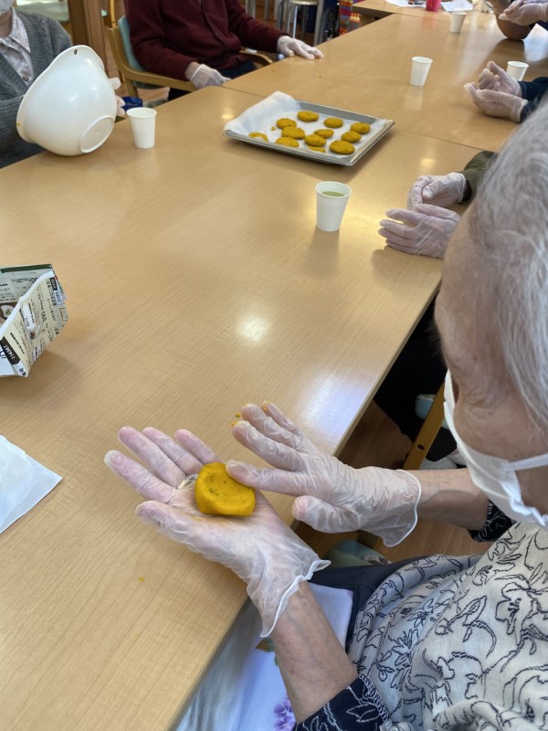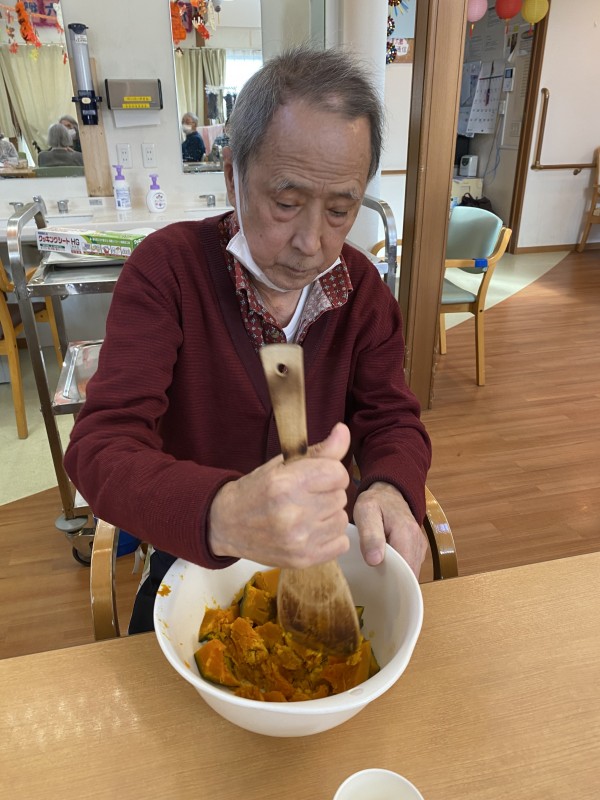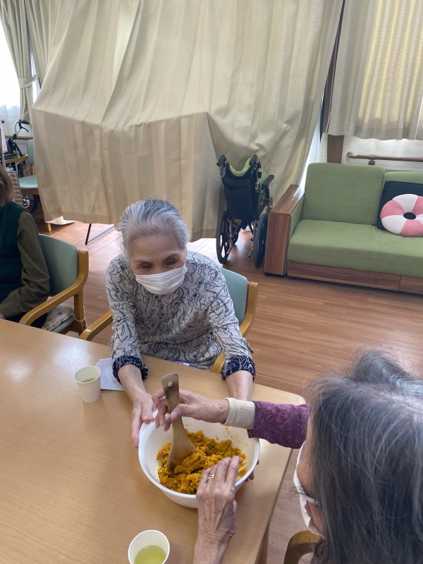 今日は、秋の味覚“かぼちゃ”を使ってかぼちゃ餅をつくりました( ´ ▽ ` )