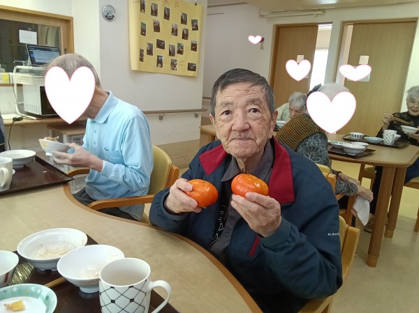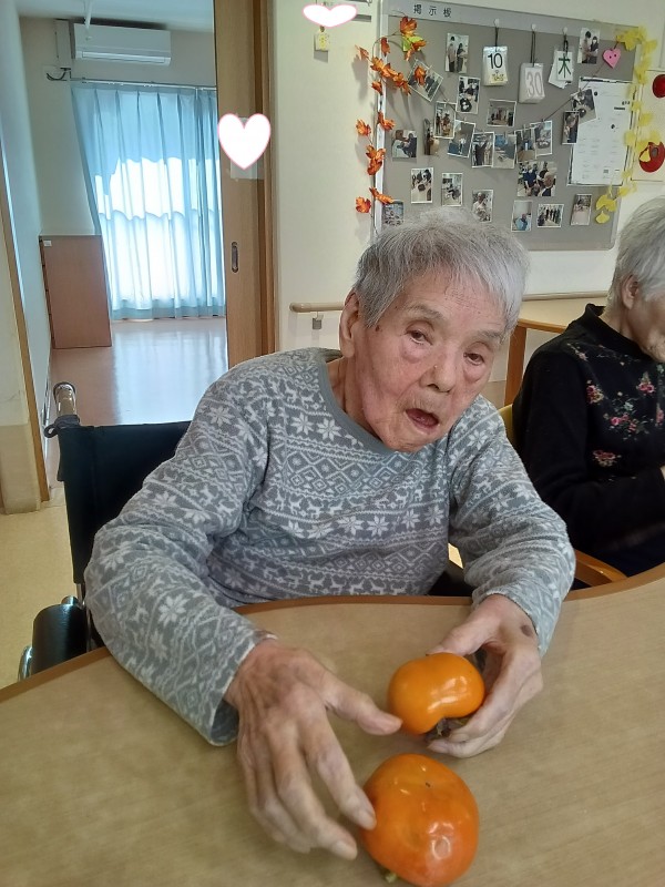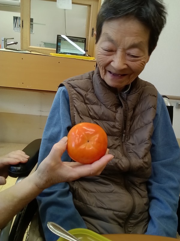 大きな柿を見て「秋だね」と笑いながら話しておりました。
