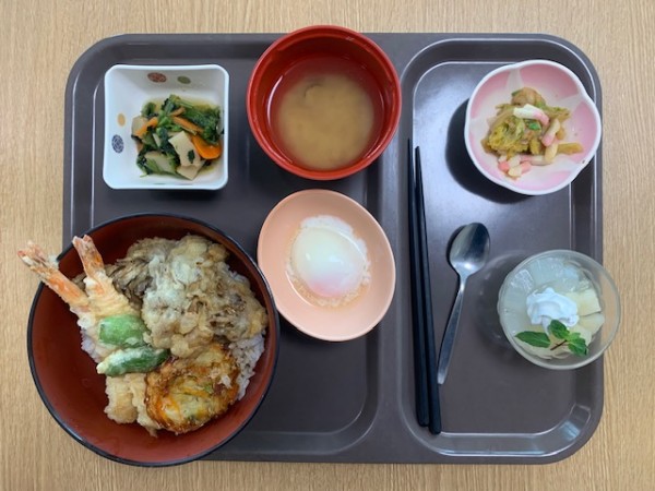 「月見天丼」は、秋らしくキノコがふんだんに使われておりとても美味しかったです。