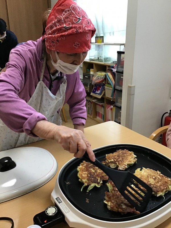 臨時利用で駆けつけてくれた利用者様も積極的にお好み焼きを焼いて下さっていますね♪