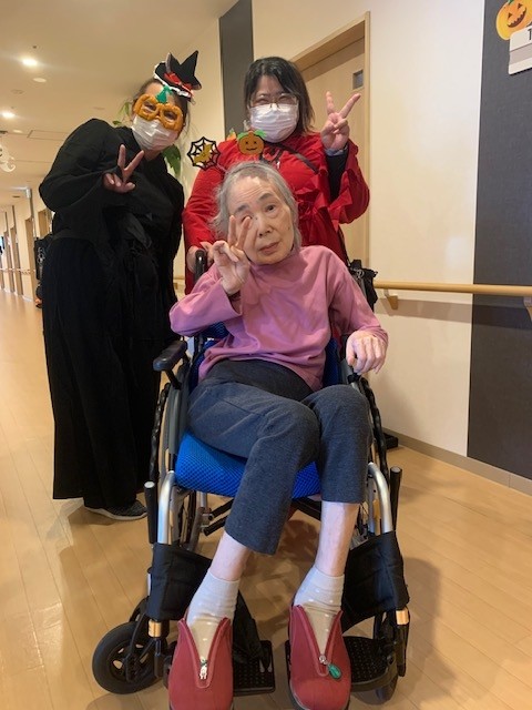 職員は、カチューシャやメガネを付けたり、ある職員は魔女姿になってくれました。