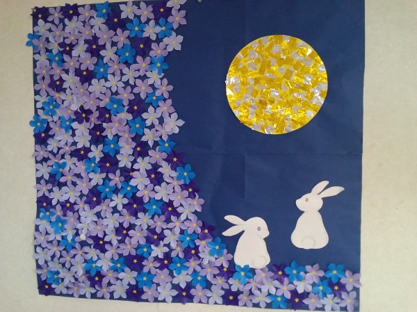 壁画制作で桔梗を作りました(*^-^*)