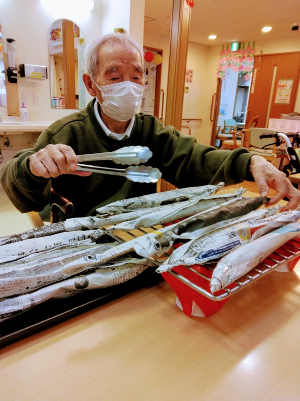 今日は秋のレクリエーションで新聞紙で”秋刀魚づくり”をおこないました(^^♪