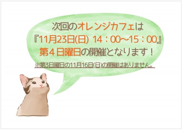 11月のオレンジカフェは23日に変更になります! & 10月のオレンジカフェのご報告