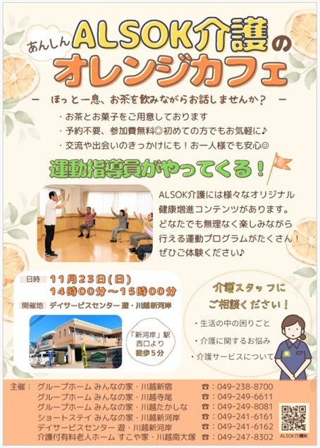 9月より、ALSOK介護の川越エリアの事業所共催でオレンジカフェをスタートいたしました。