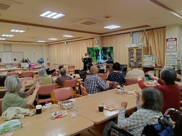 その職員のリードで、歌唱やちょっとした運動を参加者の皆様にやっていただきました。