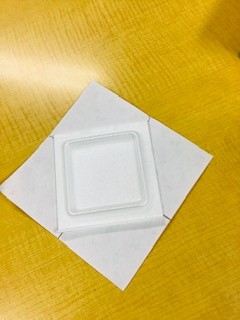 折り目通りに、一辺ずつ ゆっくり貼り付けていきましょう(^^♪