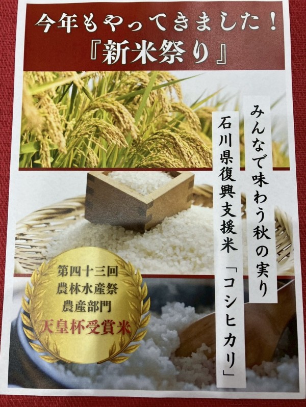美味しいお米を食べていただきたいと、今年も【新米祭り】を開催致しました。