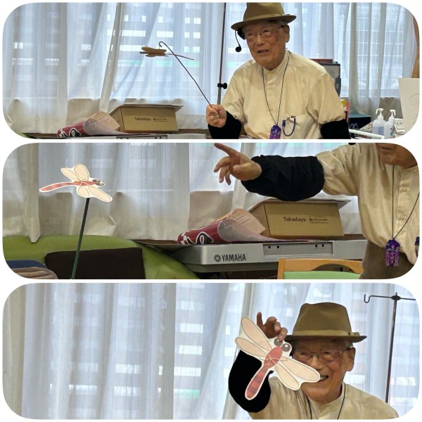 紙の赤とんぼが舞う演出もあり、まるで秋風が吹き抜けたようなひととき