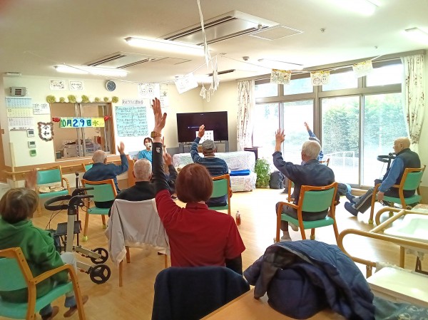 脳トレ体操で、混乱(+_+)しながらも、皆様がんばります。
