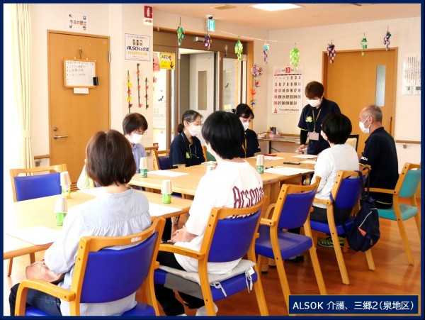 この会議には施設所長(新井ホーム長)・各階の責任者(2名)、ケアマネージャー(1名)、ご入居者のご家族(出席は任意)・自治体職員(三郷市)・自治会(三郷2では泉町会)等の方々に出席して頂き、運営状況(ご入居者様の平均要介護度・レクリエーション活動の開催)、入居者様のケガや転倒等の身体に関わる事等発生状況、等々をご報告します。