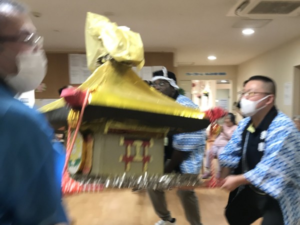 メリハリのあるホイッスルともに熱気のある御神輿が登場し、皆様手を叩いて盛り上がっていました!