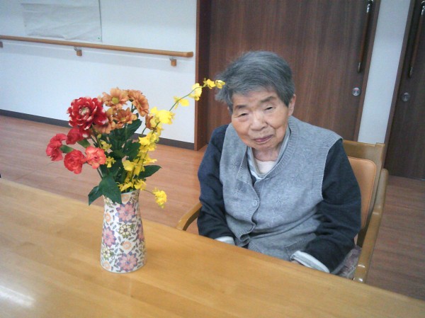 今日はご家族様の面会がありました。 お花とお菓子をお持ちくださいました。とっても嬉しそうにお話しされておりました(^0_0^)