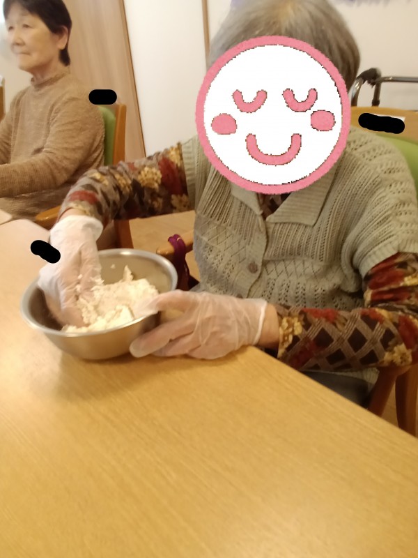 「こねるの楽しいわね!」「これから何が出来るのかしら」と会話を弾ませながら生地作り♪