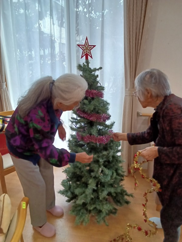 少し早いですが、ホームでは皆さまと一緒に クリスマスツリーの飾り付け を行いました。
