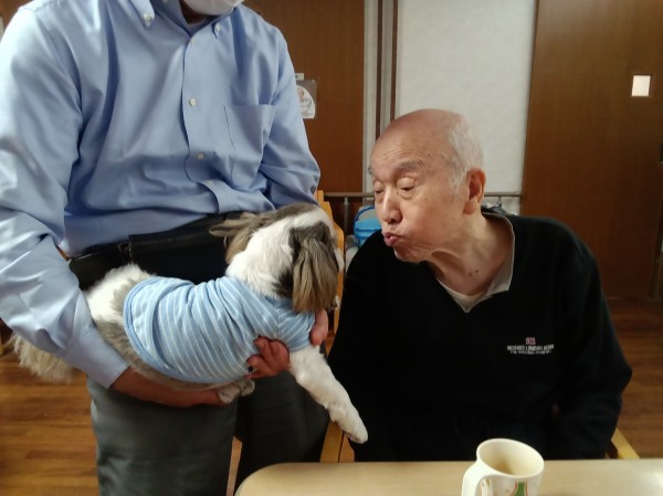 今回は利用者様H様のご家族様がホームにワンちゃんを連れて来られたのです。