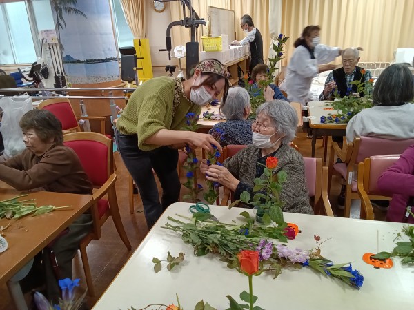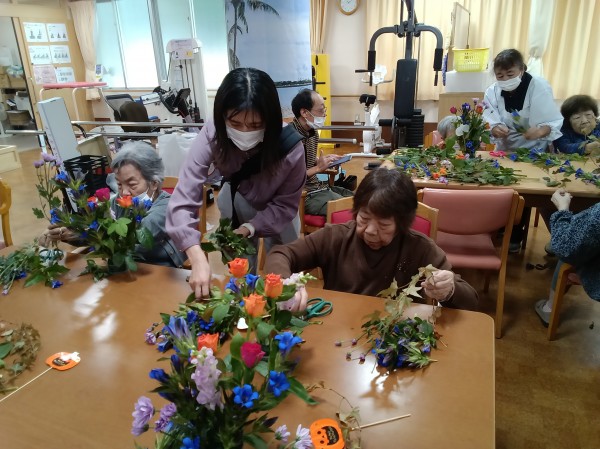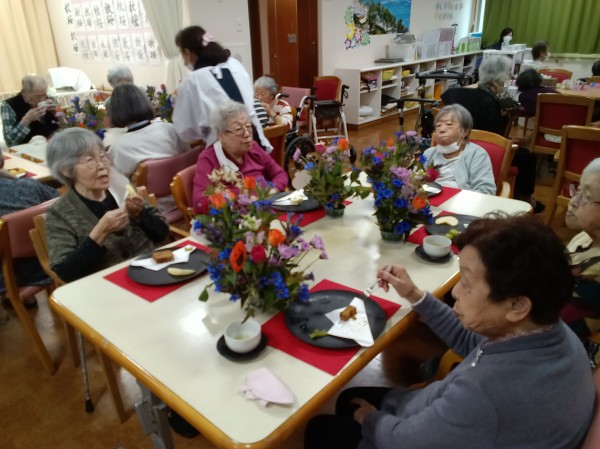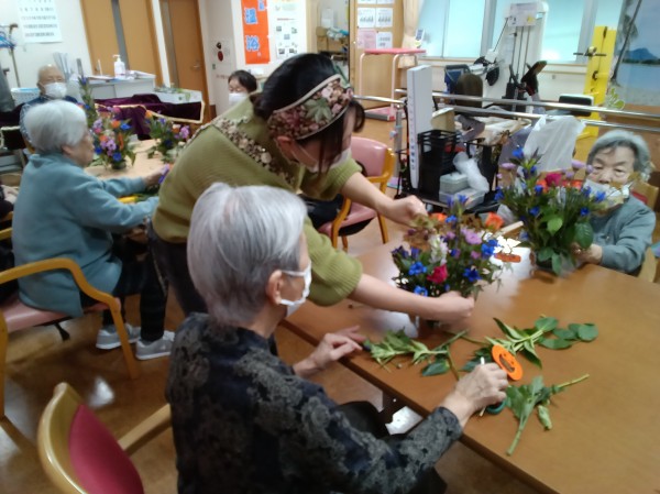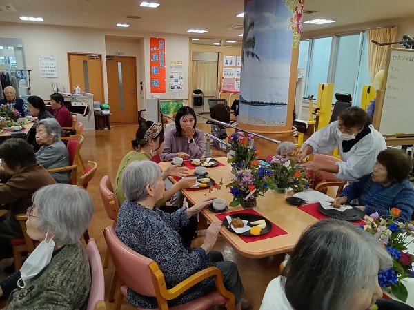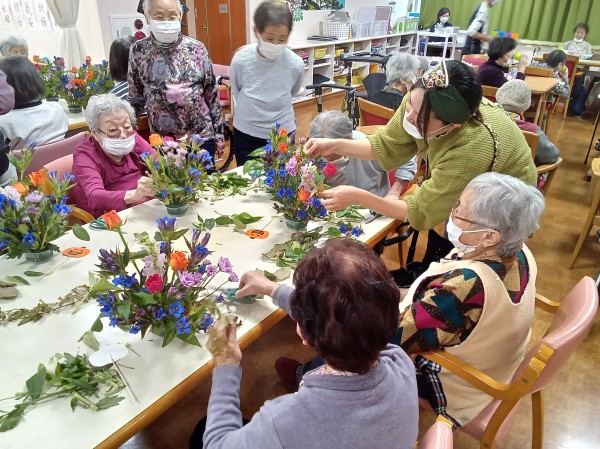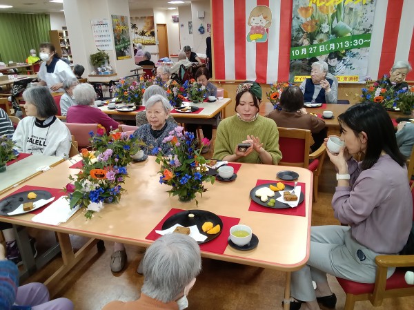 今回はフラワーアレンジメントのご様子と、フラワーに参加して下さった方々へお茶とお菓子をご提供致しました(`・ω・´)!