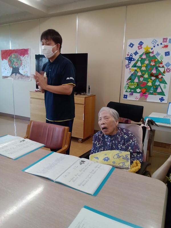 本日は中学生の方々と一緒に秋にちなんだ歌を歌いました・・・スタッフと歌っている時の顔とは違う顔を見せて頂きました。(^^♪