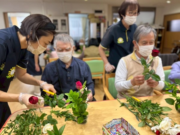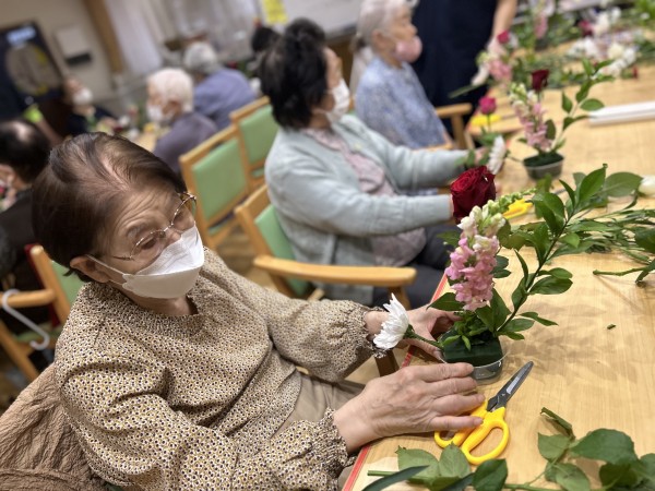 などと、自然と会話も弾み、笑顔があふれる時間でした。花を手にすると皆さんの表情が生き生き!お花の力ってすごいですね。