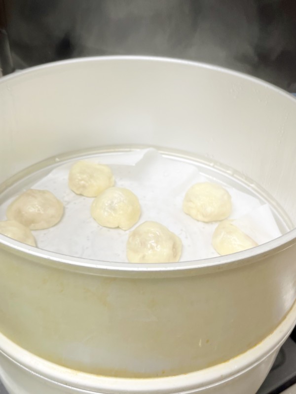 蒸し器の蓋を開けると、湯気の中からふっくらホカホカのお饅頭が!蒸したての熱々を味見させていただくと、薄皮の温泉饅頭のようでやさしい甘さが広がるとても美味しいお饅頭でした。