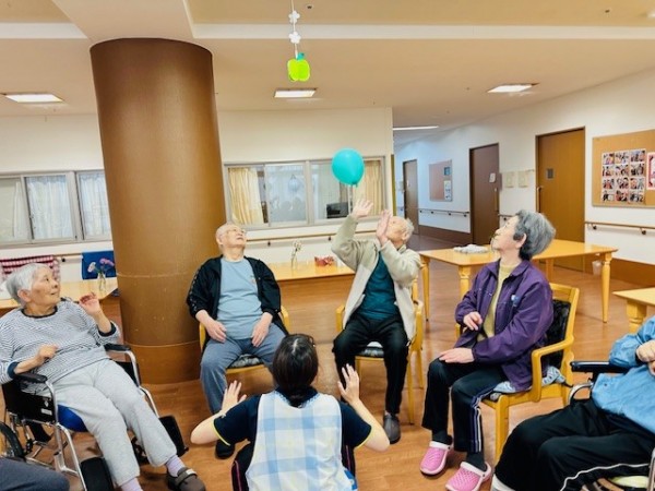 今回は風船バレーをおこなった様子をめっしーがご紹介していきます!気迫のこもった表情に注目してご覧下さい!!!