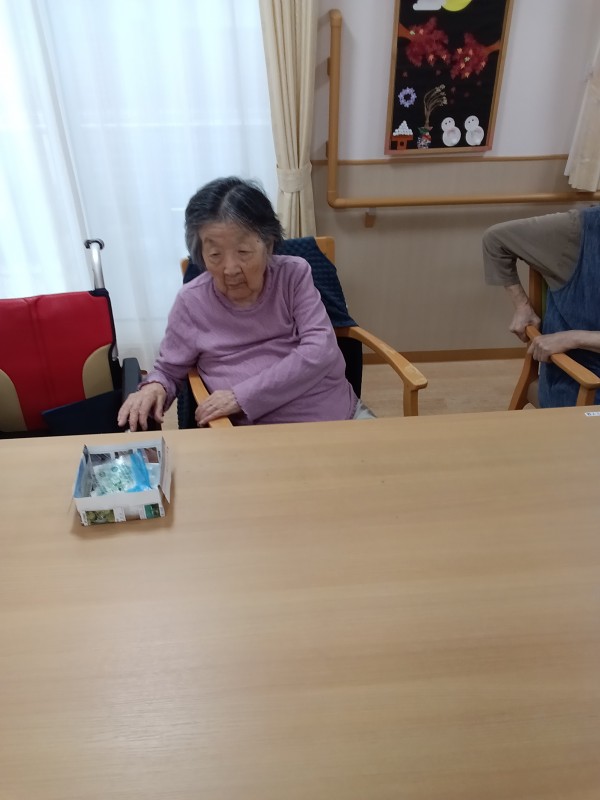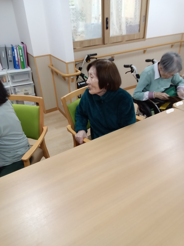 本日はリモート体操の日。こちらは一階の皆様の「腸活トレーニング」の様子です。