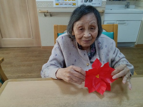 ご入居者様に冬の花などの飾りを作っていただきました。