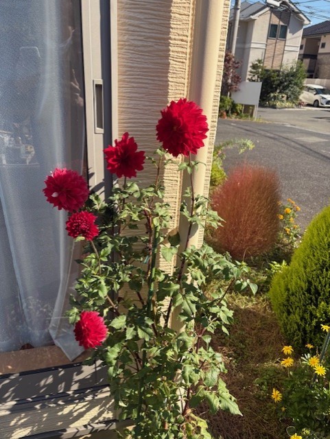 本日は、ホームの玄関先で元気に咲いた ダリアの花をきっかけに、皆さまとの素敵なひとときをお届けします。