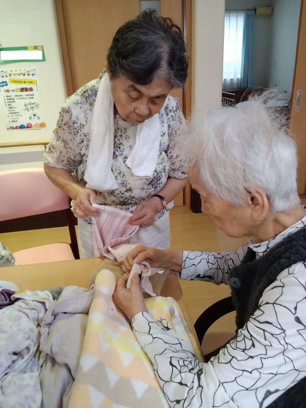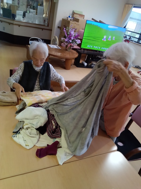洗濯物を畳むのをお手伝いして頂いているご様子です!