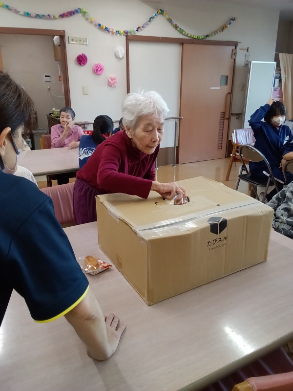お菓子のつかみ取りパート2をお送りいたします。ご入居者様の笑顔がいっぱいですね(^^♪